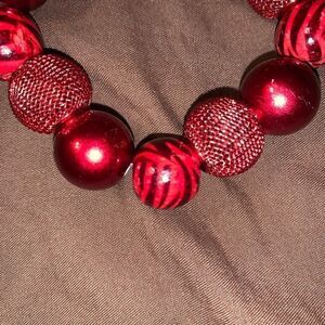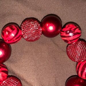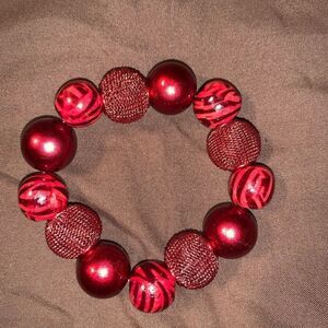 Beautiful beaded bracelet. Assorted bead designs. Stretch. Red. Preowned in good condition.