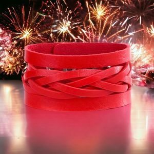 Red Leather Wrist Band l Buttery Soft Leather l 2 snap adjustment l 8.5” l New