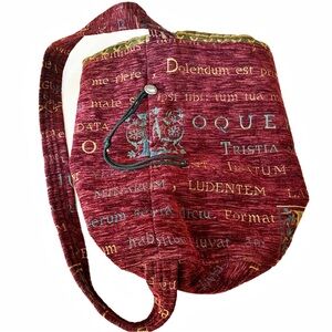 Red/Maroon Tapestry Draw-String Latin Text Pouch Medieval Renaissance