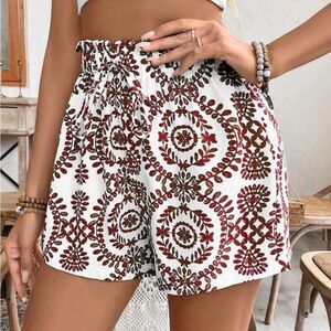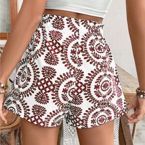 Red Medallion Print Paperbag Waist Shorts Med