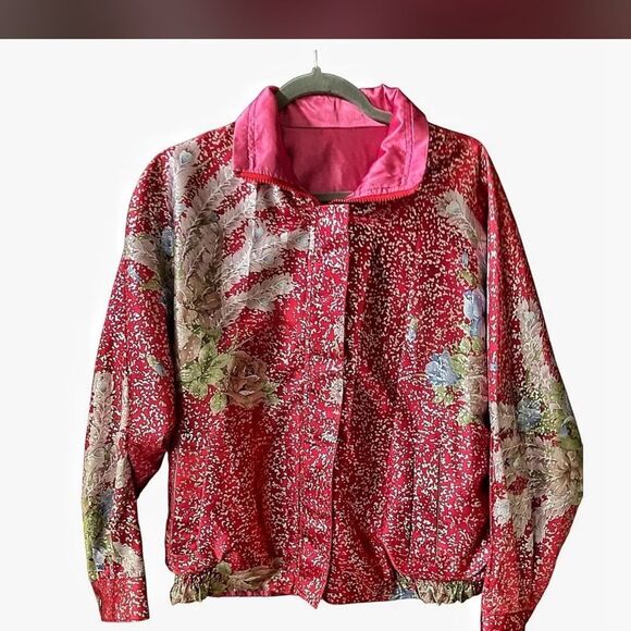 Red Metallic Floral Design Vintage 1980's Fairy Bomber Jacket Size XL