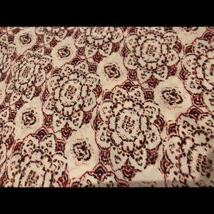 Size M. Red/off-white 3/4 sleeve length patterned crop top.
