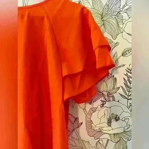 Red/Orange Crew Neck Blouse with Ruffle Sleeves, Size XL