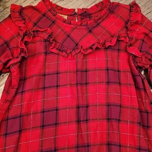 Charming red plaid long sleeve dress with ruffle details size L by Wrangler excellent new condition