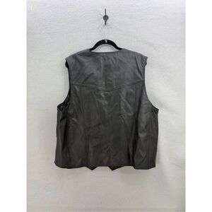 Red Ranch Mens Black Leather Sleeveless Button Down Motorcycle Vest Size XL