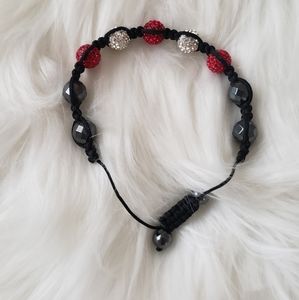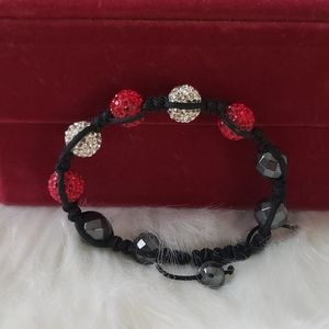 Red/Silver Rhinestone weaved pull string Bracelet