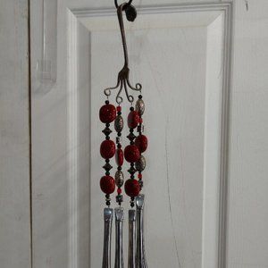 Red/Silver/Black Beads Upcycled Recycled Silverware Windchime-handmade