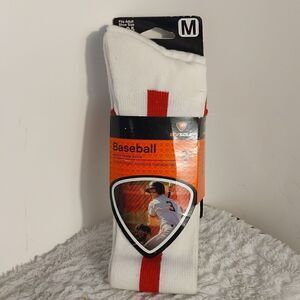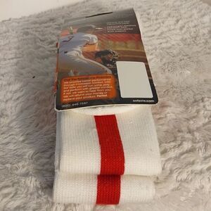 These 2 pairs of New white with red stripe SofSole adult baseball socks fit a men's shoe size 5-9.5. These have hydrologix moisture management. It has a fitted heel pocket and arch support. All offers are welcome.