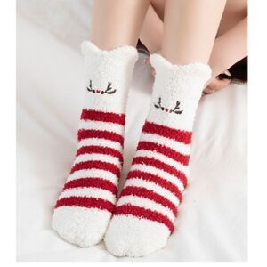 New! Red and white striped fuzzy socks. Soft and cozy. Bundle to get a discount and save on shipping.