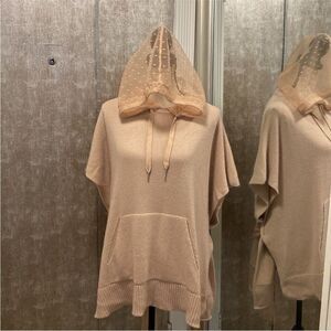 Red Valentino Women's Tan/ pink mesh detailed Hooded Sweater, XS, oversized