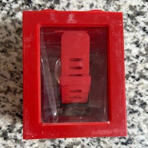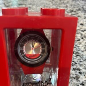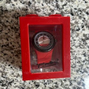Stylish red Wheelies watch with a unique design. New in box. Box does have a few scuffs, as seen in pics.