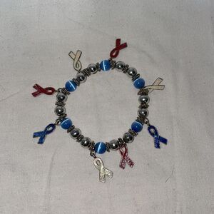 Red, white and blue ribbon beaded bracelet It is stretchy In good condition