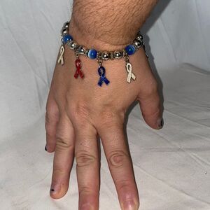 Red Whit and Blue Ribbon Beaded Bracelet