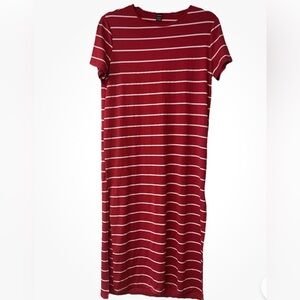 Red/White MIDI T-Shirt Dress Slits Stretch Size M work, travel