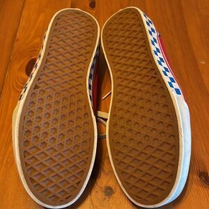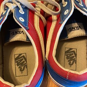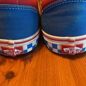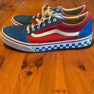 Youth size 7, red/white/blue checkered vans. These are well loved but still in good condition. Some new white laces and they would look great.