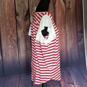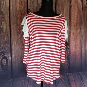 Red & White stripe coldshoulder 3/4 sleeve top S