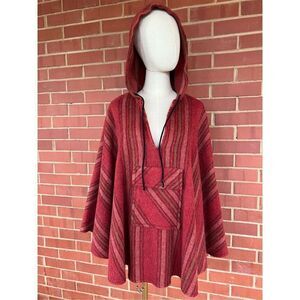 Wool/wool blend red striped cape