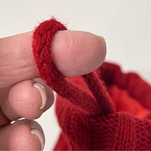 Deep red and white stripe Christmas stocking for your pet. Loop to hang. Cable Knit.