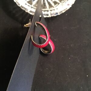 Bright cherry red enamel earrings with gold trim are post and clutch back and have an overall oval shape. Length of 3/4” and width of 5/16” at widest point. $8 each or bundle 3 of same price for $15 and save.