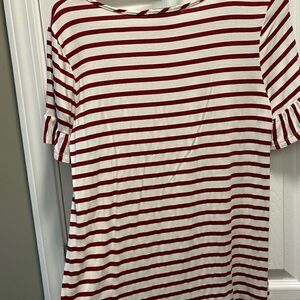 Like new only used one time red and white strip lose tee. Size is small. All sales are final Pet and smoke free home