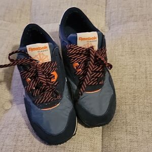 Navy blue and orange.
