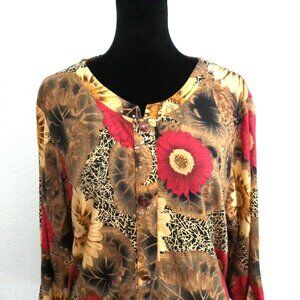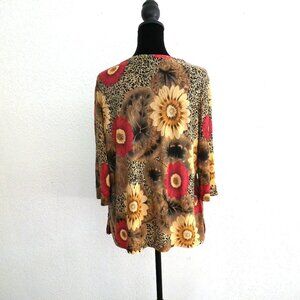 Red/brown floral 3/4 sleeves shirt, with little studs design