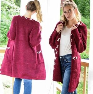 Reddish burgundy long sleeve lace up cardigan Super soft cozy thick and warm reddish burgundy long-sleeve lace cardigan Very Good Quality