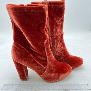 Reddish Orange Women's Block Heels Pointed Toe Ankle Boots Side Zip Elegant Shoe
