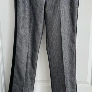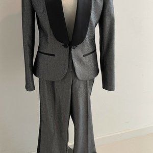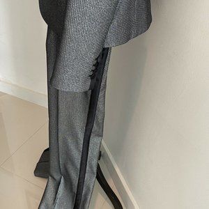 Flared Tuxedo Pants With Side Stripe. Flat front. 2 side slit pockets. Jacket has one button closure.Satin collar. Jacket retail $1295, Pants retail $995..Italian size 44 for both. Retail Price for Suit: $2290.