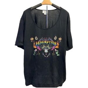 Redemption Shirt, Black with Multi-Color Design, Size on label, true is XL. NWOT.