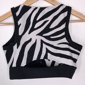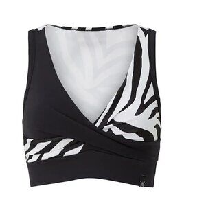 Description ~ Black and white printed nylon (74% Recycled Polyamide, 26% Elastane). Top. Sleeveless. V-neckline. 13" from shoulder to hemline