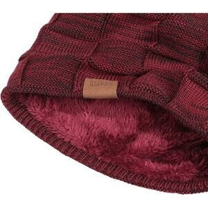 Redess Beanie Skull Cap Hat Unisex Fleece Lined Knit Slouchy Cozy Red Wine