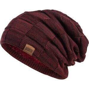 REDESS Beanie Skull Cap Hat Unisex Fleece Lined Knit Slouchy Thick Red Wine