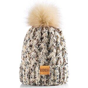 ✨ Redess Pompom Beanie Women Cream Fleece Warm Thick Slouchy Snow Ladies Hats