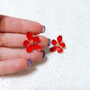 Red flower stud earrings M236