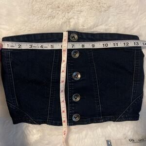 Indigo Darkwash Denim Jean Crop Top Bandeau Style Buttons at front Crop Top Size Small. Skirt size Small
