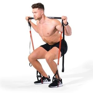 Redge Portable All-in-one Gym System is a high quality retractable bodybuilding bar fitted with durable adjustable resistance bands attached at both ends.