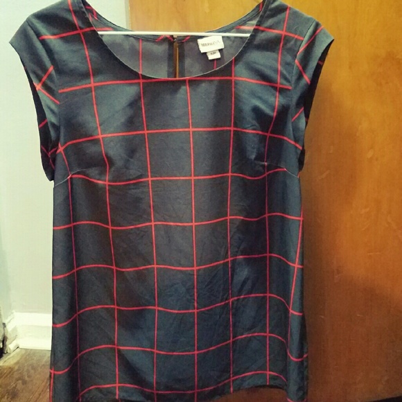 Grey blouse with red square striped pattern. Great blouse for work or for a night out. Never worn. SAME DAY/ NEXT DAY SHIPPER! Offers welcome!