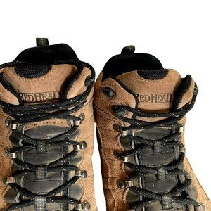 These Redhead hiking boots, size 13, offer durability and comfort, crafted with a leather upper. Ideal for outdoor enthusiasts, they provide reliable traction with their sturdy design and superior support. The classic brown color pairs well with various outdoor outfits, making them a practical addition to any hiker's gear.