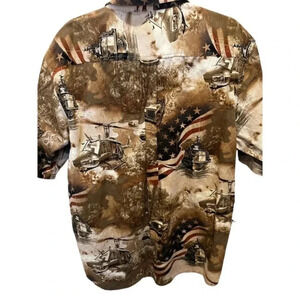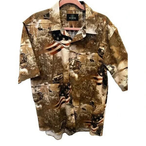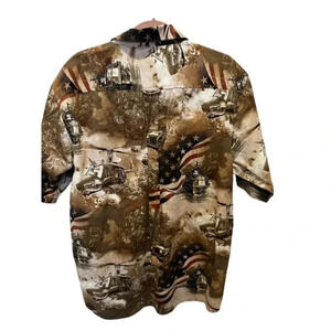 Redhead Brown Patriotic American Military Flag Short Sleeve Shirt Size XL
