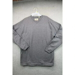 Redhead Men's Ribbed Pullover Sweater-Large-Gray-Cotton Blend-Nice