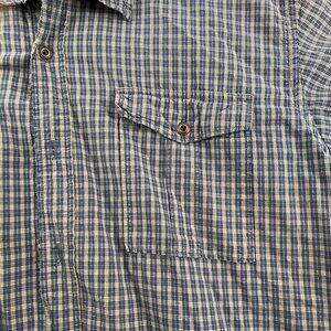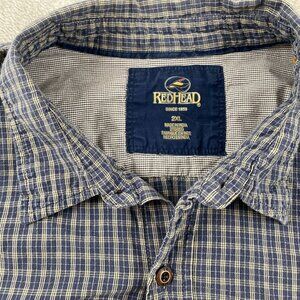 Redhead Mens Shirt 2XL Short Sleeve Plaid Button-Down Blue & White Cotton Casual