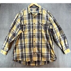 Redhead Shirt Men's 2XLT Yellow Gray Plaid Heavy Duty Long Sleeve Button Up