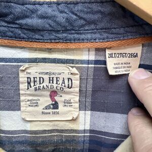 This Redhead shirt for men in size 2XLT features a collared neckline with a button closure and long sleeves. The heavy-duty cotton fabric is perfect for winter, fall, and spring seasons, and the plaid pattern adds a touch of outdoor style. The shirt has a regular fit and is part of the Redhead product line, made in India. It also includes pockets and is machine washable for easy care.
