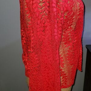 Red heavy lace blouse