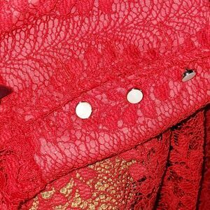 intricate red heavy lace button down blouse button sleeves