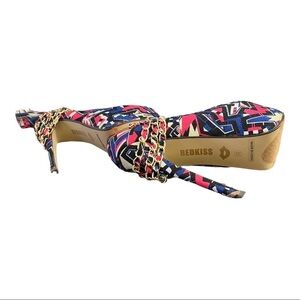 Redkiss Chain 6” Stiletto Heel Size 8.5 Blue Multi Color Geo Print Platform Clog
