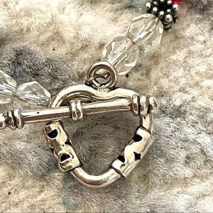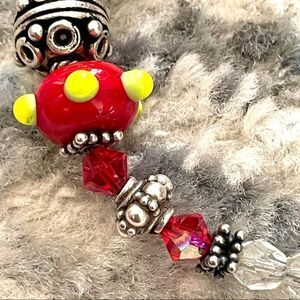 Red lamp work bead bracelet with silver and Swarovski crystals