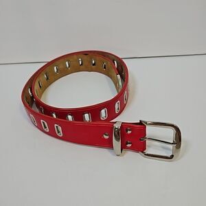 40 inches long. The first belt hole is at 36 inches. My guess is it would fit a size 8-10 nicely. There are a couple of flaws from use. Please see pics. Open to reasonable offers.
