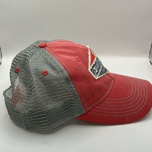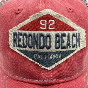 Stylish Redondo Beach cap in reddish/salmon/pink and gray. Features a bold front patch.